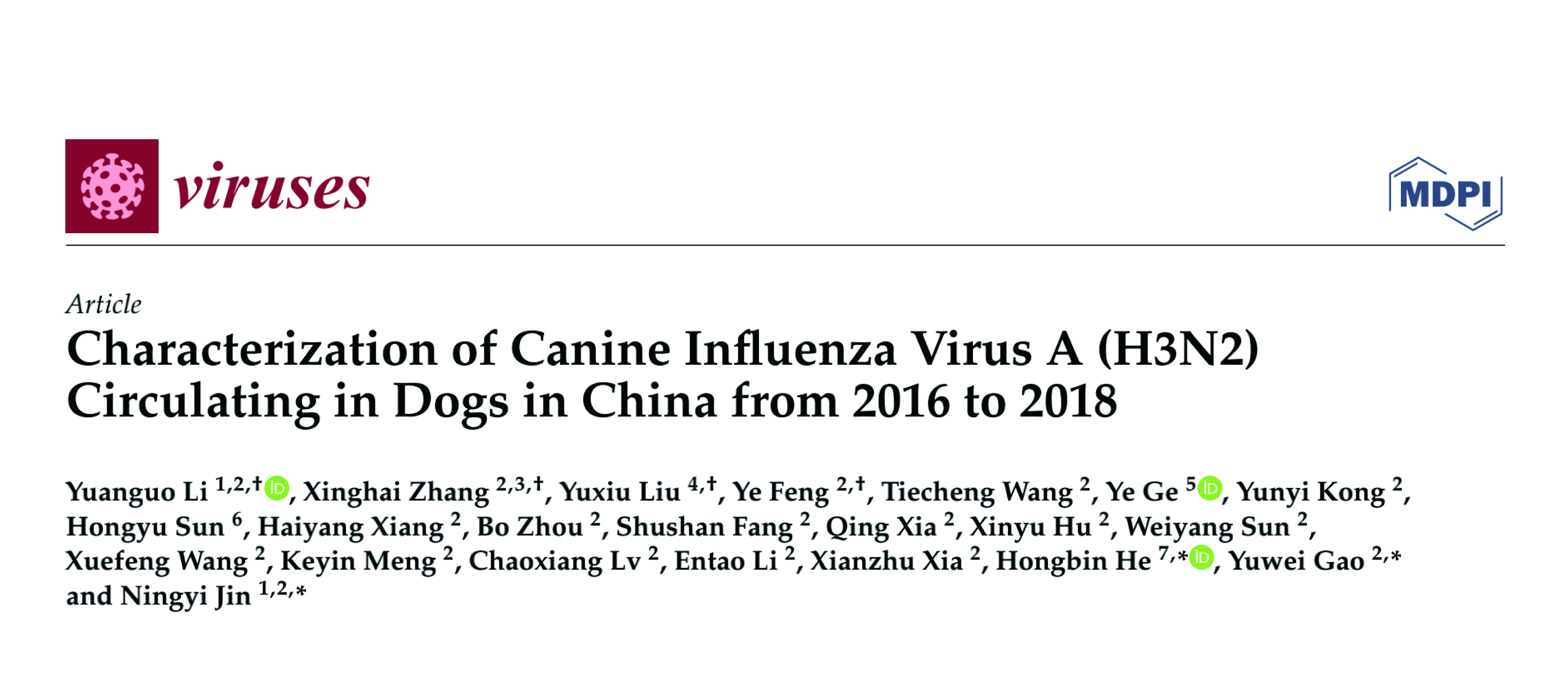 刘玉秀-Characterization of Canine Influenza Virus A (H3N2) Circulating in Dogs in China from 2016 to 2018